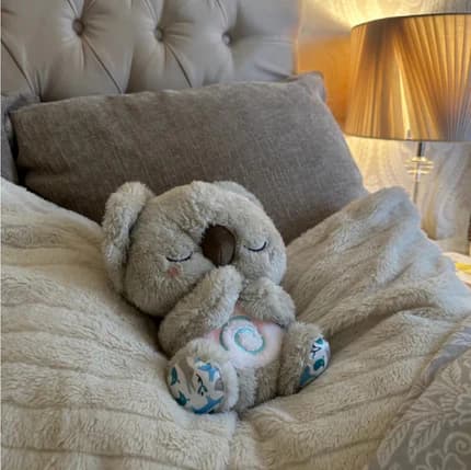 A puha plüssjáték beépített mechanizmussal rendelkezik, amely nyugtató légzési ritmust és pihentető hangokat hoz létre, segítve a felhasználót az ellazulásban és az elalvásban.