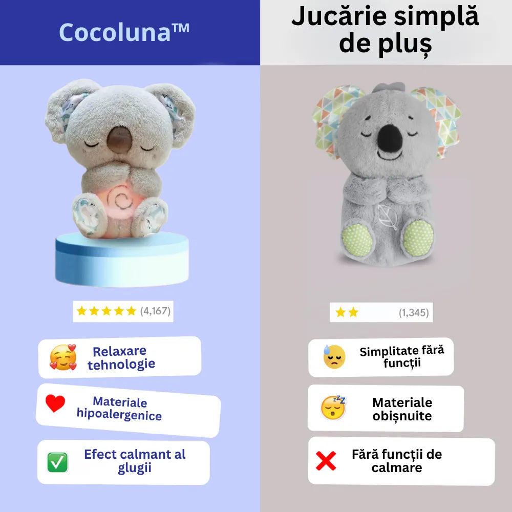 • L-am cumpărat pentru fiica mea care avea dificultăți în a adormi. Respirația lui CocoLuna o calmează instantaneu. Desigur, costă 250 lei, dar merită fiecare bănuț, doarme liniștită acum!